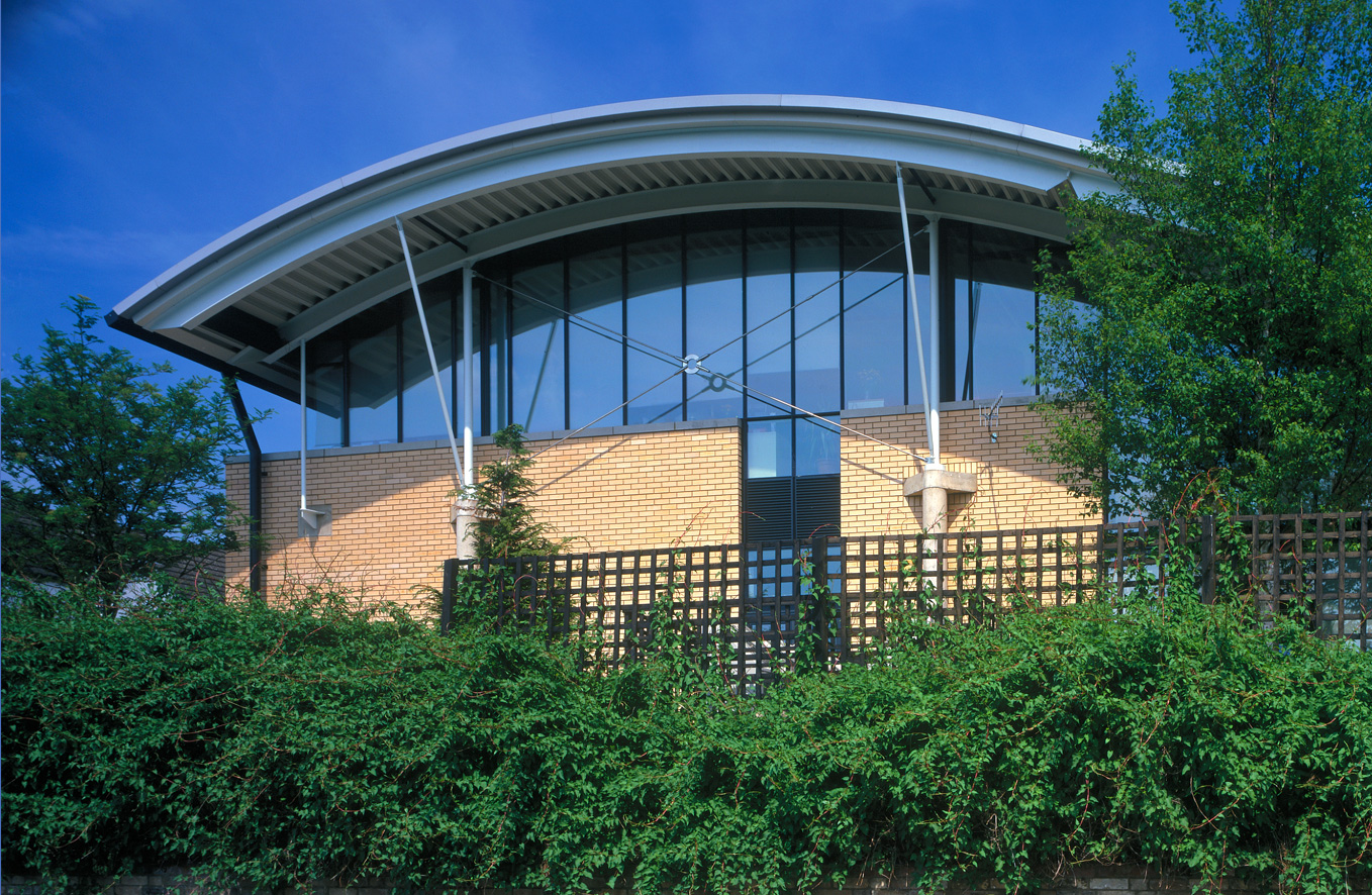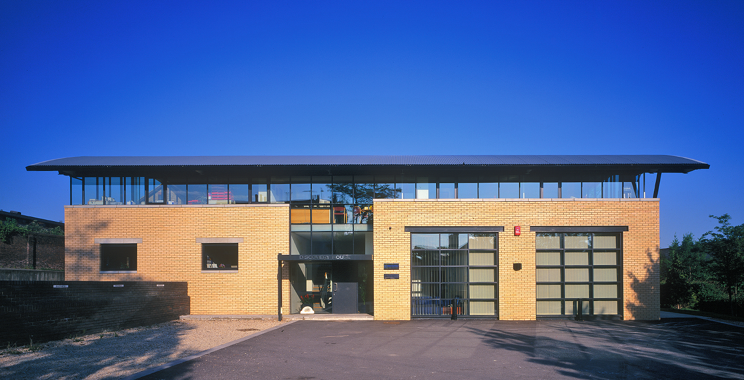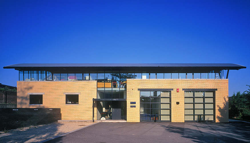 The development was created from a disused fire station by replacing the existing outer brick skin and adding a first floor under a new curved roof.